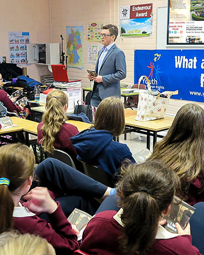 Para abordar este desconocimiento generalizado, Ellory inició una serie de seminarios de Jóvenes por los Derechos Humanos (YHR) en escuelas de Dublín y del condado de Cork. Recientemente se entregaron a dos escuelas católico romanas para niñas, totalizando 299 estudiantes.
