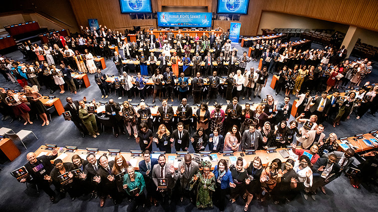 Esperanza y logros fueron los temas comunes que se desarrollaron en la sesión de apertura de la 16ª Cumbre anual Internacional de Derechos Humanos, transmitida en vivo desde la Sala de Conferencias 4 de la Sede de las Naciones Unidas en Nueva York. A la cumbre asistieron invitados de 78 naciones, la cumbre de tres días del 2019 se enfocó en las comunidades trabajando juntas para erradicar los abusos de los derechos humanos a través de la educación en la Declaración Universal de los Derechos Humanos (DUDH).