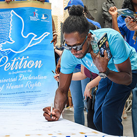 Únete al movimiento internacional de Derechos Humanos haciéndote miembro de Unidos por los Derechos Humanos y dona hoy. UHR (por sus siglas en inglés) ayuda a individuos, educadores, organizaciones y organismos gubernamentales de todas partes del mundo al crear conciencia sobre la Declaración Universal de los Derechos Humanos.